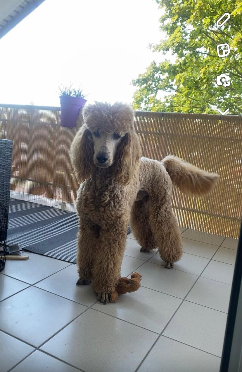Hallo, mein Name ist Ramona Freese, und mein Herz brennt für diesen intelligenten Großpudel, der mit seinem Charme und seiner Treue unsere ganze Familie verzaubert.